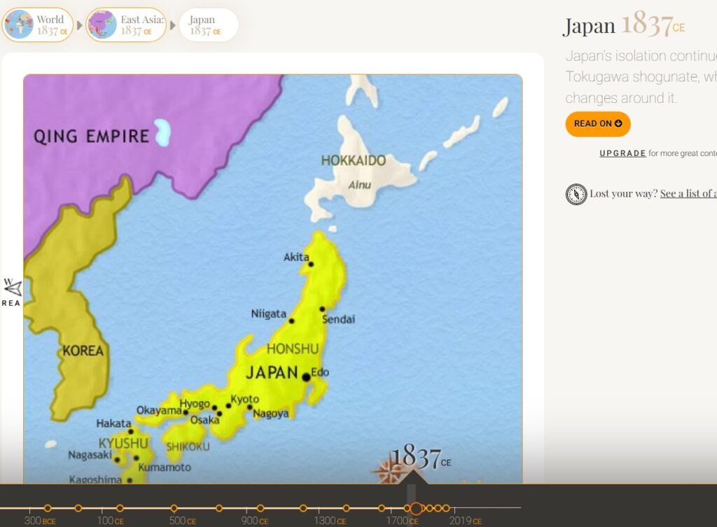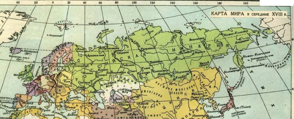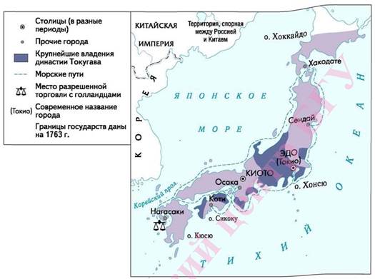 Японское государство во второй половине XVIII века. Более точное изображение японских владений по сравнению с предыдущей картой.