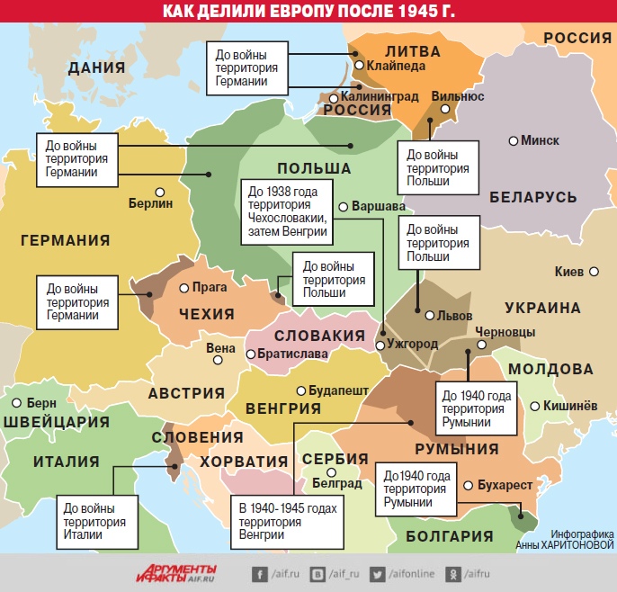 В результате Второй мировой войны, кроме присоединения Сахалина и Курильских островов к СССР, из присоединенных территорий, затем доставшихся РФ — Калининградская область и часть Финляндии. В ходе войны СССР потерял более 30 миллионов человек на фронте и в тылу, большинство из которых — русские. Из европейских стран, имеют сегодня территорию, доставшуюся им по итогам Второй мировой войны — Польша, Чехия, Греция, Украина, Румыния, Люксембург, Бельгия, Голландия, Литва, Болгария, Словения. Резкое осуждение советского режима большинством этих стран, не мешает им полноправно владеть и считать своими территории, полученные в результате победы СССР и его союзников. Такие страны как Албания, Эфиопия, Австрия и ряд других — стали независимыми государствами. В Юго-Восточной Азии — независимость получила Корея, Тайвань отошел Китаю, многие другие государства сохранили свою независимость.