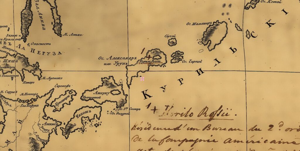 Самым южным островом России на Курилах оказывается о. Уруп. В целях лучшего управления Курильскими островами по указанию русского правительства Российско-Американская компания на основе существовавшего на острове Уруп русского поселения создала особый Курильский отдел во главе с мичманом А.К. Этолиным. 23 апреля 1828 г. российское поселение на острове Уруп было восстановлено силами Российско-Американской Компании (под руководством Сысоя Слободчикова и Андрея Мыльникова).